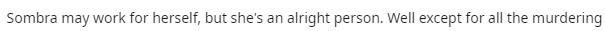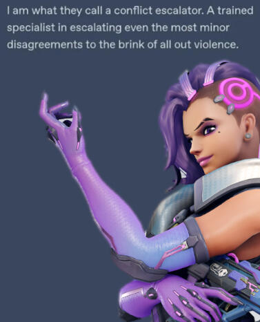 I walk a fine line between accurately portraying Sombra and ruining roleplays. I won't do anything drastic without asking you first.