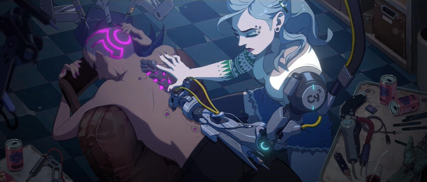 Recovery is always the worst part of cybernetics. Worse still is recovery without the cybernetics to look forward to; all pain, no gain.The ache in her side is a constant. The gunshot wound had been given a few days to heal, though she’s done nothing to help in her inability to decide where to recover. Initially she had gone to her chopshop, the place she always recovered after an installation, with the excuse that she might as well get a new mod if she was going to be in recovery anyways.That didn’t happen. She got scared and she ran home to her boyfriend. How embarrassing.In the end she’s in bed, taking painkillers three times a day and staving the pain off with sleep. Genji brings her water and snacks and affection and apologies and she accepts three of those things.Was it technically his fault? Sure, as much as it was hers, as much as it was anyone else who happened to be in the room. Things happen. She tells him not to feel guilty about it, and that she’s thankful he got her out of there and got her help.She doesn’t remember it well. She remembers suddenly being on the floor, she remembers flashes of green and screams as something otherworldly defends him and her. She remembers Genji, though not the look on his face. Bits and pieces of events leading up to her waking up in a strange place, but safe with Genji by her side.It’s only in nightmares that she realizes how much she really remembers. Her ‘what-ifs’ manifest into something tangible; she’s on her own, Genji’s not there to help her, and she begs herself to wake up from the nightmare before she finds out what happens at the end. Worse still, she’s partnered with someone who won’t help her-- Reaper, barely sparing her a glance before wisping out the door. Moira, lamenting a lost opportunity before doing the same. Sigma, his focus on things far more important than one body in a door.The nightmare that does her in is one where she’s not even the one dying.Sombra kills the power; only the emergency lights are still on. She's a sucker for special effects.So close to the door, she gets a hand on it to push it open, and then there's a gunshot.The power starts back up– lights and loud noises from the games, sudden and overwhelming.Genji is crumpled at the door.The sound of the shot pierces the air in those last milliseconds of silence, and time practically slows to a crawl.Sombra can feel it — the bullet cutting through the air as it passes her, so close. Whatever she shouts is drowned out by the sudden return of power, the screaming, a second shot that grazes her shoulder implants.There’s nothing she can do. There’s nothing she can do. There’s nothing she can do.He's awake, but shaking and staring off. Flares of green, his visor is too bright and too dim all at once. His hand clutches his side, masking whatever's taken him down.More than anything, he looks scared.Her own hands are trembling as she places one over his. Her expression is one thing — guilt. Her voice is an unsteady rasp.“You’re dying.”The lights flicker overhead.“I don’t know what to do.”It almost sounds like she’s saying it to herself more than him. Everything goes silent around them.“There’s nothing I can do.”She runs. She leaves him there. She wakes up with a sob.She doesn’t mention it to him.